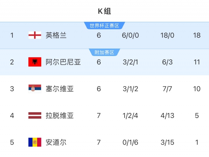 10月15日讯 世预赛欧洲区小组赛K组第8轮,英格兰客场5-0大胜拉脱维亚,世预赛6轮全胜狂轰18球但0失球,锁定小组头名,提前2轮锁定2026世界杯!